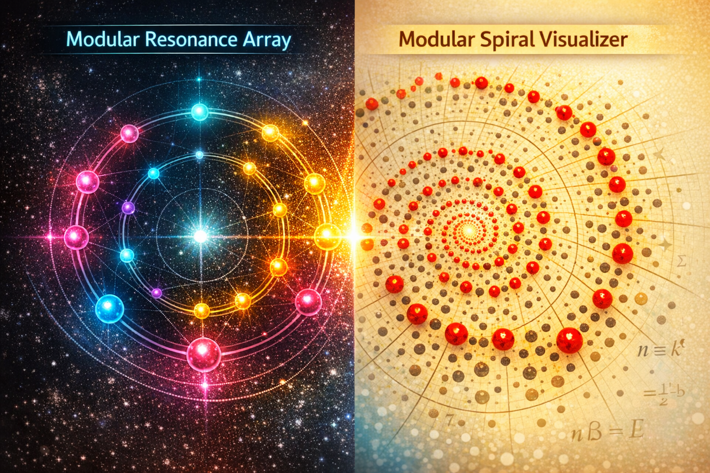 • Mod 𝑛 • Residue Classes • Totients • Prime Cycles • Euler’s Theorem • Möbius Strips • Modular Time • Winding Numbers • Group Theory • Congruence • Residue Fields • Symmetry Modulo Logic • φ(n) = n × ∏(1 − 1/p) • Mod 𝑛 • Residue Classes •